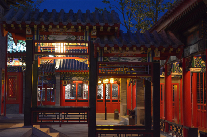 ▲吾鄉(xiāng)島核心以北區(qū)的三路建筑為主,整個(gè)北區(qū)分為中、東、西三路建筑,建筑等級(jí)分明,功能區(qū)分布合理。中路建筑為明清中式大式建筑群——營(yíng)銷中心;東路為傳統(tǒng)建筑四進(jìn)四合院——鄉(xiāng)府;西路建筑是四合院與游廊及亭、臺(tái)、軒、閣等組合而成的建筑群——燕園。