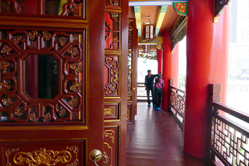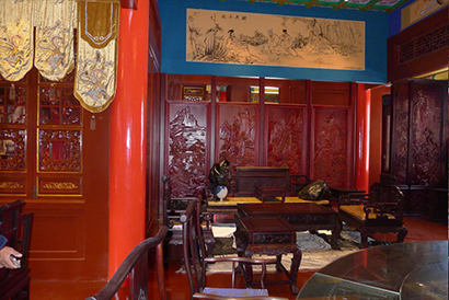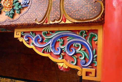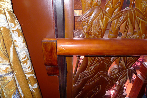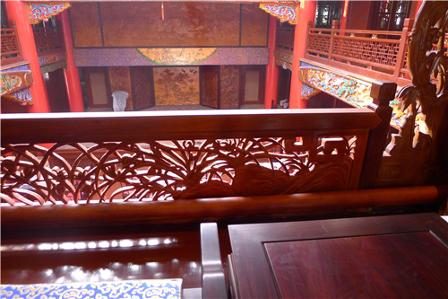 ![]() | ←↑貴賓席前的護(hù)欄做了特別設(shè)計(jì):增設(shè)一條活動(dòng)護(hù)欄條,賞戲時(shí)取下來(lái),保證最佳視野;想增高護(hù)欄時(shí)抬起來(lái),增強(qiáng)安全性。通過(guò)簡(jiǎn)單的安排,體現(xiàn)了以人為本的設(shè)計(jì)用心。 ↙↓浮雕、圓雕、透雕、髹飾、紋飾、配色、布局;建筑構(gòu)造、榫卯運(yùn)用、藻井……以原汁原味的傳統(tǒng)木作技藝為基礎(chǔ),加以實(shí)用改良創(chuàng)新。 |
