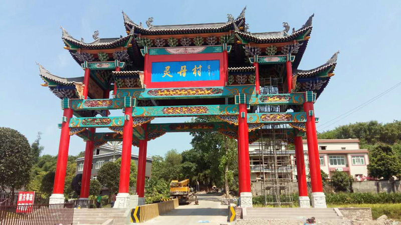 靈丹村牌樓施工后期,合江新聞報道圖片