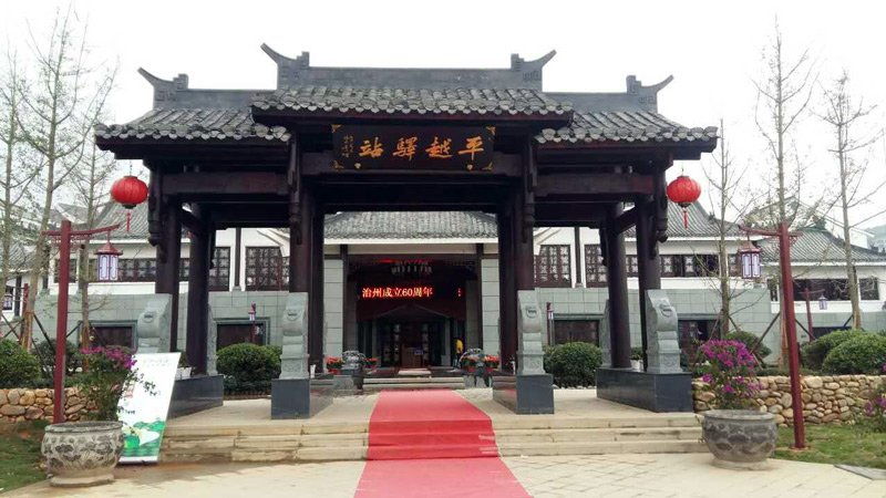 貴陽大力推動文化建筑,福泉古城文化旅游區(qū)是其中的重點項目。我受邀承接了該旅游區(qū)的所有木作項目。其中:平越驛站,是貴州歷史上著名的十六驛站之一,原始建于明洪武五年(1372年),在此以古樸雄厚的木建筑形制全面復建;萬三府,建筑外部灰瓦白墻,呈現(xiàn)徽派民居風格,內(nèi)部構(gòu)建裝飾則以厚重粗大的用料和不惜工本的華麗木雕,展現(xiàn)了江南巨賈的富貴之氣。