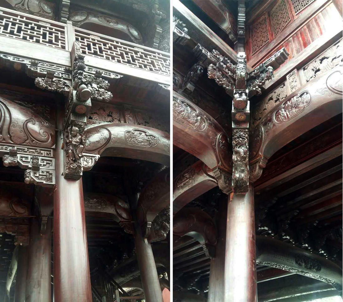 萬三府內(nèi)部構(gòu)造雕飾,粗壯厚重的構(gòu)建,配以精美繁復的木雕