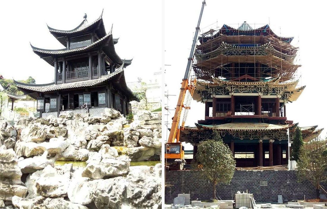 萬三府觀景樓 重檐四角攢尖 與 萬三府觀景樓 重檐八角攢尖